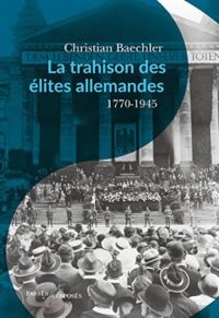 Comment et pourquoi un pays de si haute culture que l’Allemagne a-t-il pu s’abandonner au national-socialisme ? La question, on le sait, ne cesse de tarauder les historiens, et cela des deux côtés du Rhin. Christian Baechler apporte à son tour une réponse, qui ne s’en tient pas à la seule période 1919-1945 habituellement privilégiée. Il expose de façon magistrale le récit des origines d’une « trahison », dont le long prélude est étudié avec la précision d’un entomologiste. Le choix des mots est, ici, essentiel à la démonstration. Les « élites » désignent une « bourgeoisie culturelle » qui, de son apparition dans le dernier tiers du xviiie siècle au milieu du xixe siècle, réserva à l’Allemagne les promesses de ses idéaux néo-humanistes, libéraux et modernistes. Ce groupe social spécifique de la société allemande – composé des juristes de l’administration et de la justice, des notaires et des avocats, des pasteurs des Églises territoriales, des enseignants des universités et des « gymnases » ainsi que des médecins – dépendant directement ou indirectement de l’État dans l’exercice de sa profession entend alors opposer le prestige de la culture à celui de la naissance et de la fortune. Cette aristocratie d’un nouveau genre se souciait bien évidemment de l’unité allemande, mais tout autant de libérer la société des rigidités héritées d’un Ancien Régime décrié. La question sociale comme celle du parlementarisme, notamment, furent posées en des termes éclairés, nourrissant une réflexion plus générale quant au rôle de l’État. Ainsi, la « bourgeoisie culturelle » fut une contributrice essentielle de l’effervescence politique de l’Allemagne jusqu’au Parlement de Francfort (1748-1749), qui marqua l’acmé de son influence.